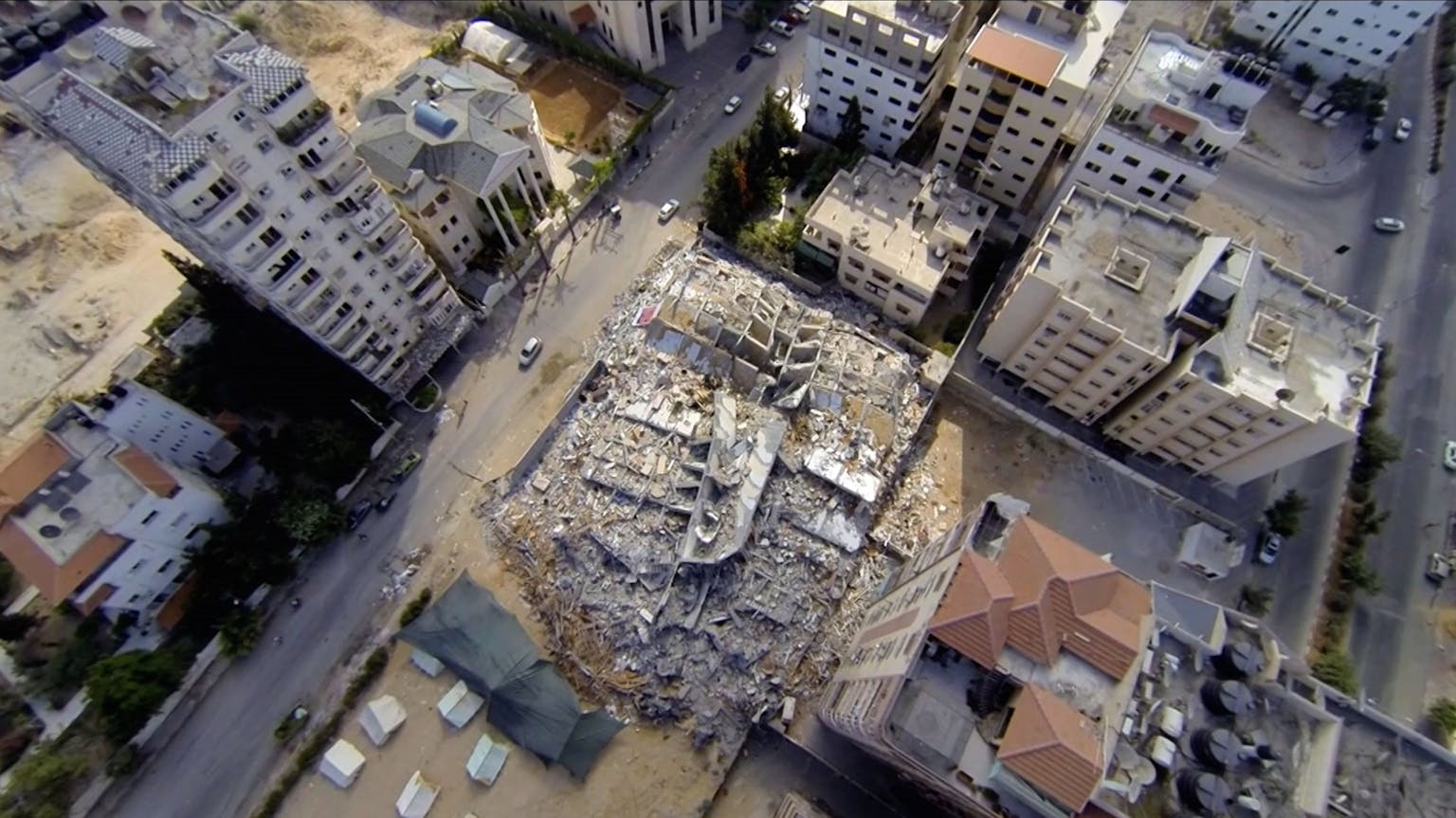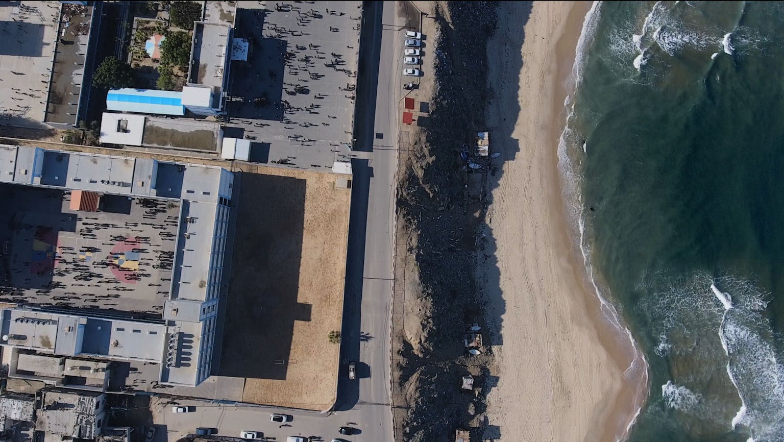 By the third war, I’m sort of experiencing again what I experienced then, which was a realisation that, actually, these platforms that are supposedly being made for us are false. They’re not real. They’re there for them. They’re not for us. Because if they were, then something would stop – then it wouldn’t be progressively getting worse every year. This was the thing that started to become very clear to me. Every year, the situation got worse, even though people knew more and more about the occupation, or understood it, or were even in solidarity with us. So, I made this film, which is a feature-length film. I work between cinema and installation and hadn’t really set out to make a feature-length narrative film, but I wanted to make a film that paid homage to Gaza, that resisted describing our struggle, and that really forced us to think about the future. If this is happening in Palestine, what does that mean for the world?