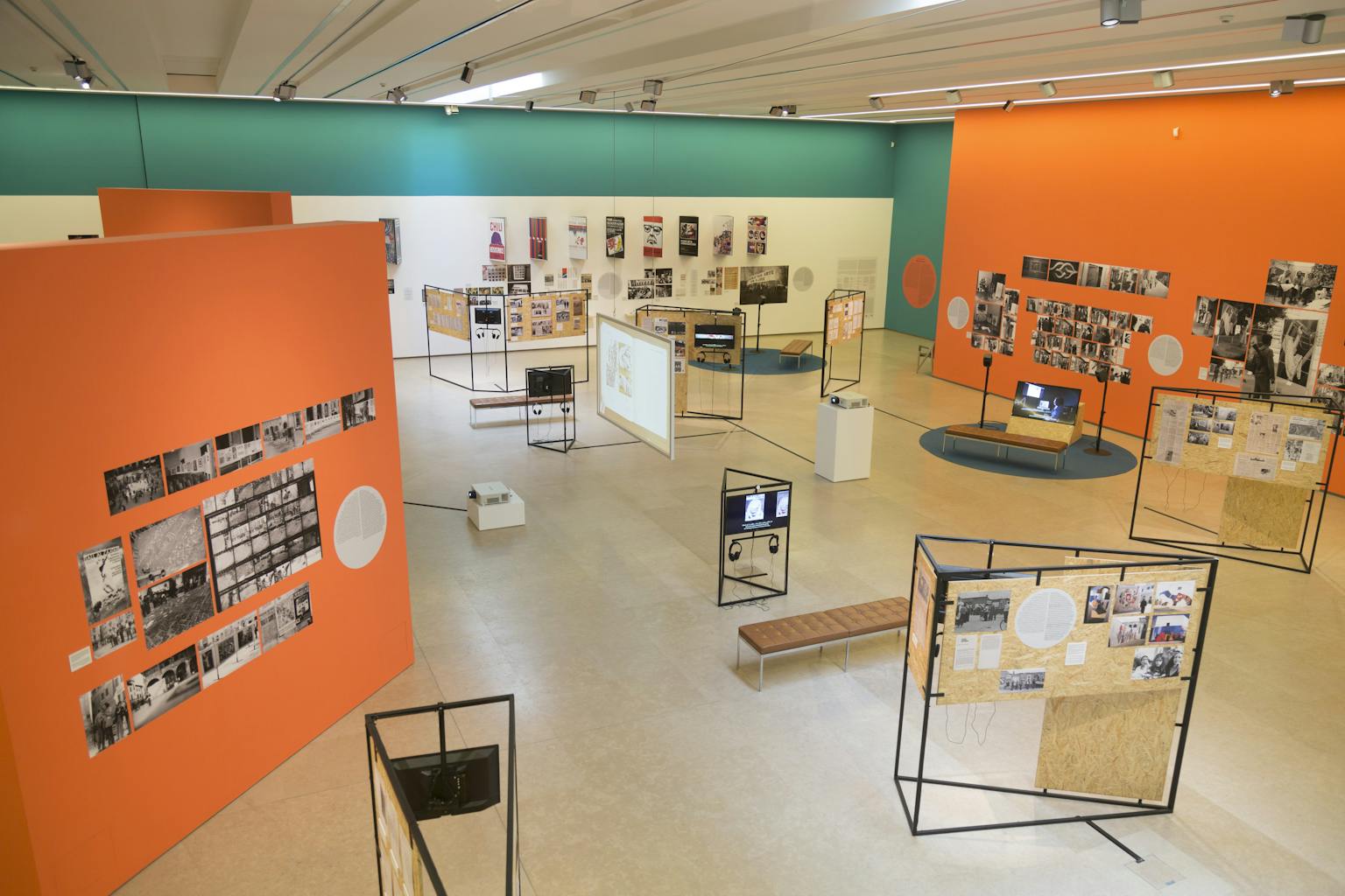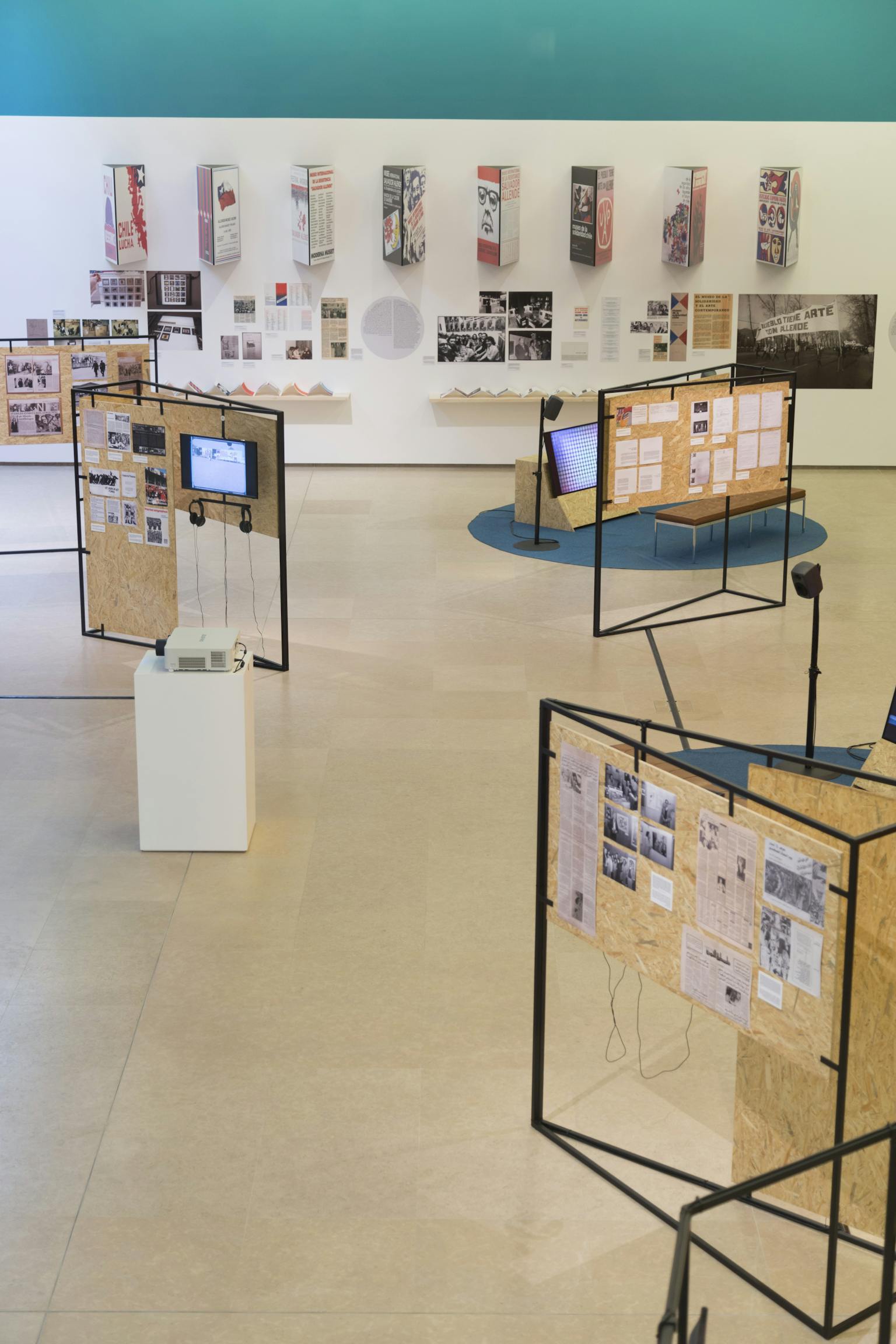 Past Disquiet is a documentary exhibition. It does not include artworks. It’s made of archives, and yet not a single original archive, and that’s intentional. As we investigated the 1978 exhibition, we realised that the story of this collection of artworks in solidarity with Palestine was connected to three other collections, namely the museum in solidarity with the people of Chile and their struggle against the Pinochet dictatorship; the collection in solidarity with the anti-apartheid struggle in South Africa; and the collection in solidarity with the people of Nicaragua after the Sandinista revolution seized power.