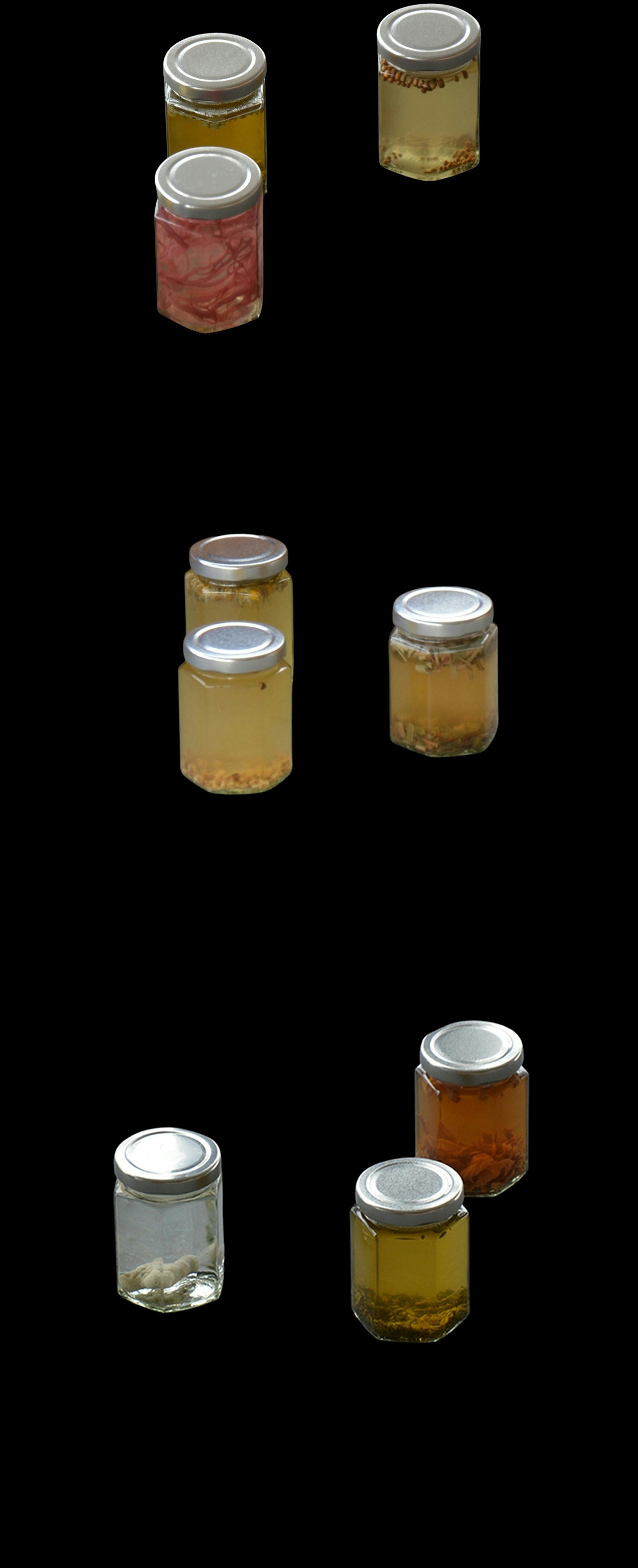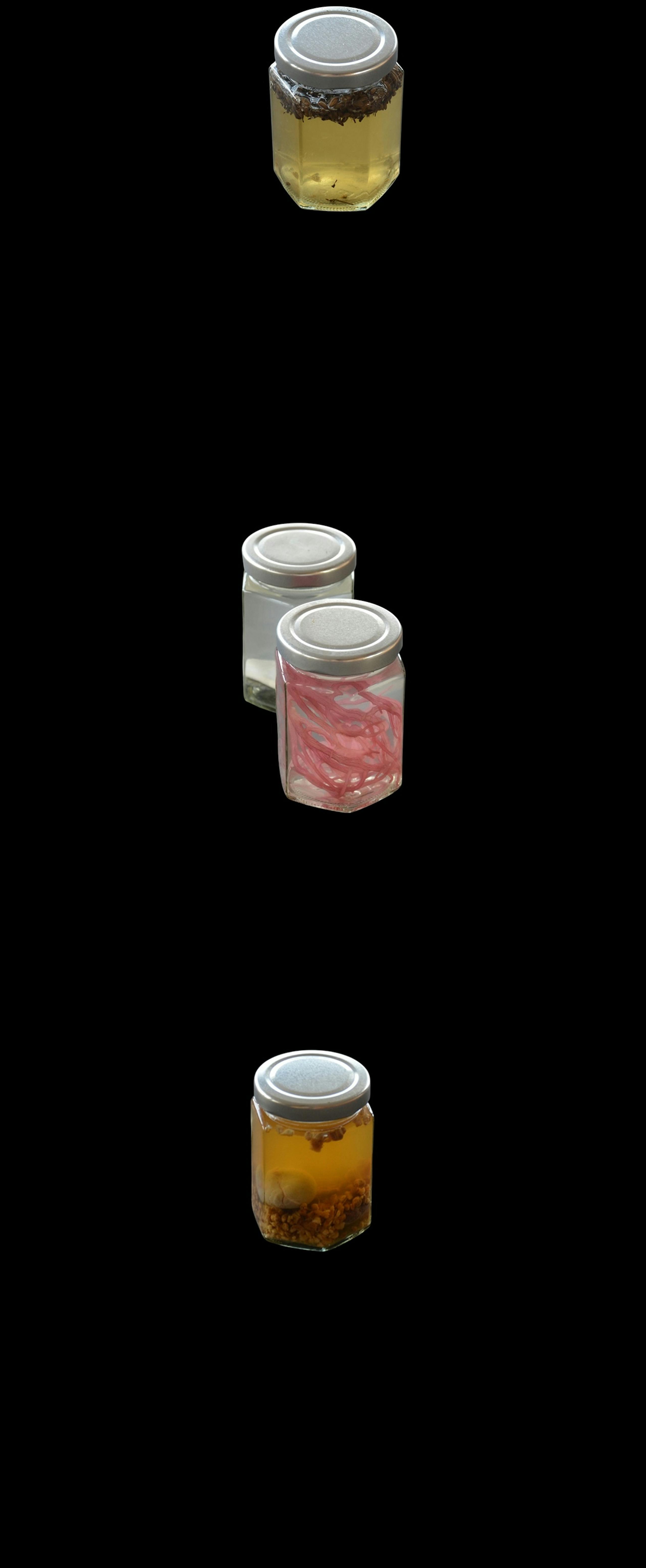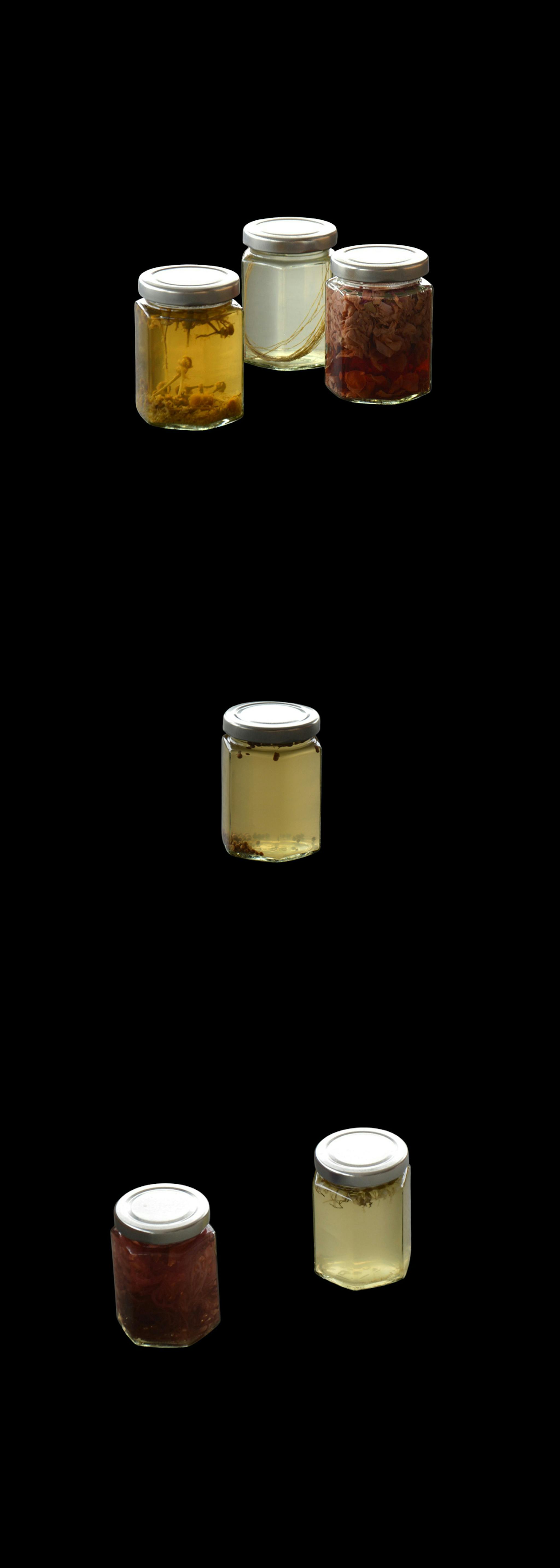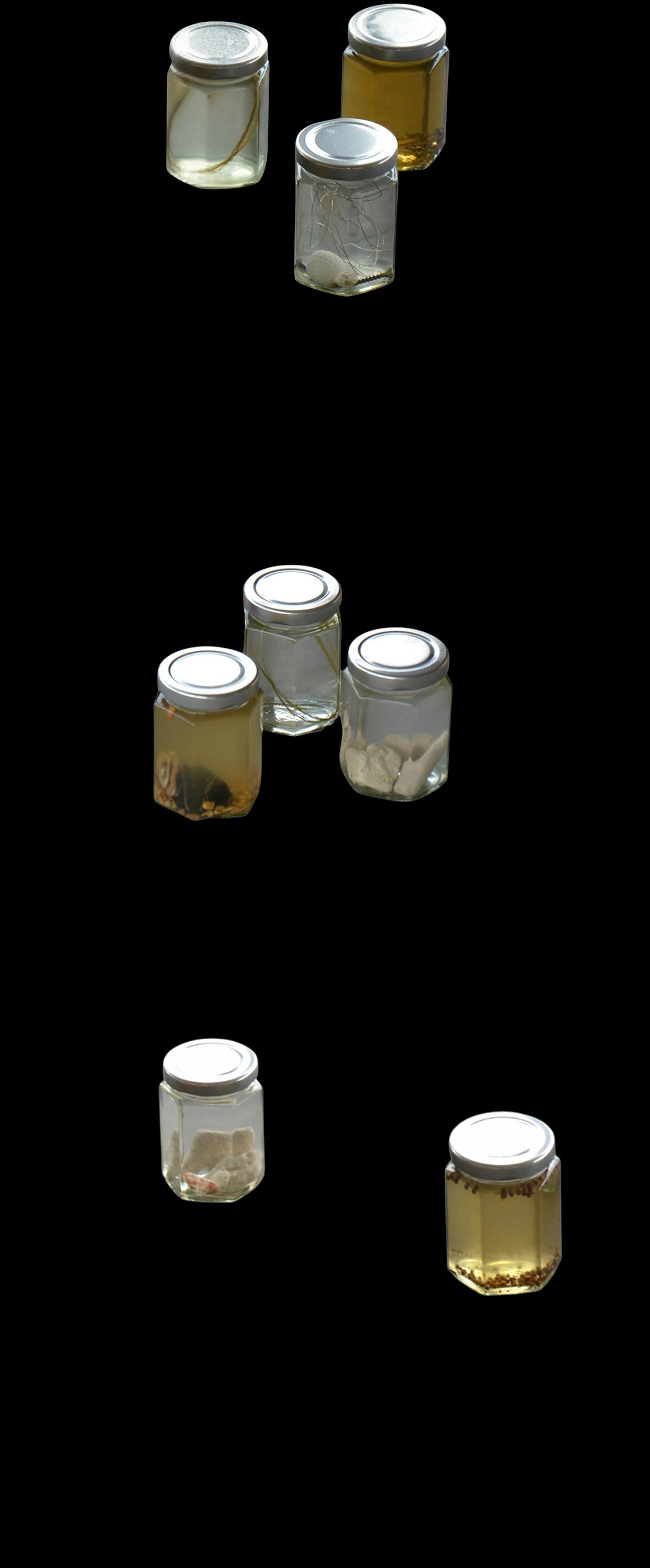 28.0000° N, 45.0000° W (TIDAL ARCHIVE) (2025) is a visual essay by Ocean Baulcombe-Toppin observing transatlantic flows of energy and material. Indexed within this constellation of vessels is matter relating to the sacred, geological, and incidental. A wave washes ashore as herbal liquidities. Contained and preserved, this material draws on the knowledge of Afro-spiritual plant medicine practices and traditions.
