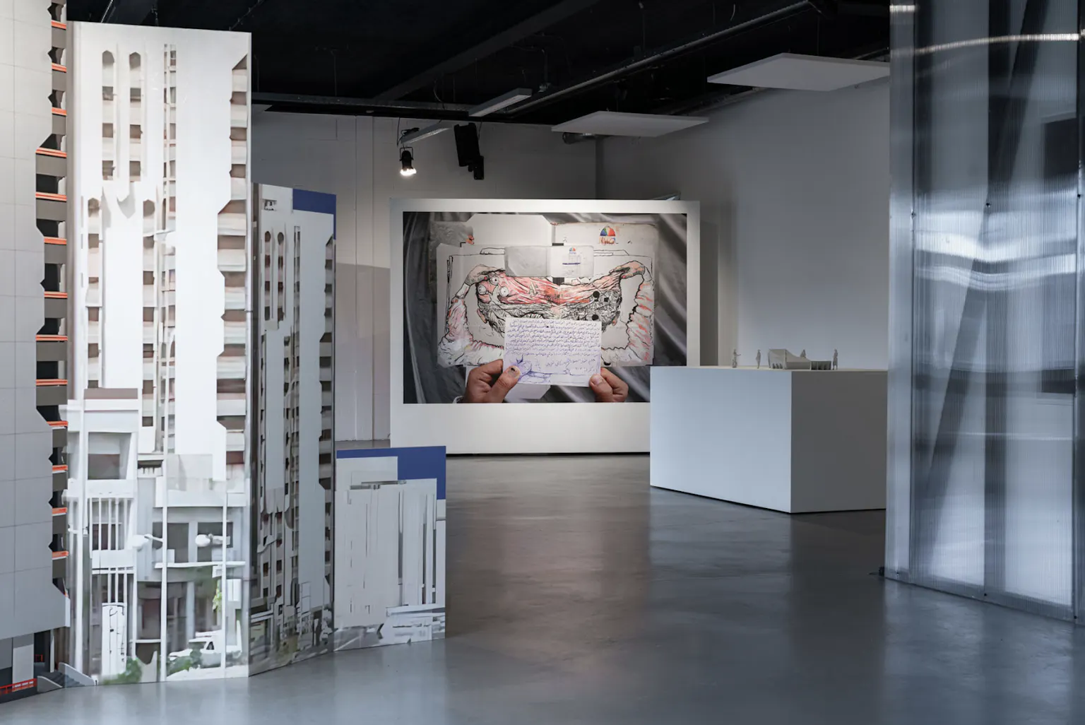 There's a reference here to the Dutch forces. And I’m presenting, in this same exhibition, a mock-up of buildings constructed by the Dutch contractor Bredero between 1980 and 1984, still known today as the ‘Dutch Buildings’. They rise along Haifa Street, and one of its residents was a female architect who lived on the 15th floor, self-studying deconstructivist architectural styles that hadn’t yet been built in Baghdad. When she later taught these styles to her students, she used examples from poetry to explain them – a gesture I find deeply creative. And then, during the tour, I noticed the word ‘Dutch’ appear again in your handwritten note. Your handwriting shakes as you write it. It’s set against a drawing of the back of a head being opened, almost split. What’s happening there?