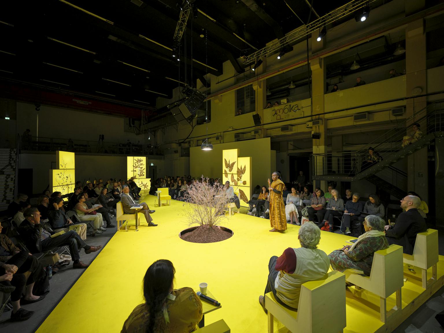 This particular chapter, titled The British East India Company on Trial, was the third iteration of the project, following hearings in Amsterdam in 2021 and Gwangju in 2023, each time in arts spaces. Staged at the Ambika P3 space at the University of Westminster on Marylebone Road from 4 to 6 April (an off-site commission of the Serpentine Gallery), the hearing set its sights close to home: on the enduring legacies of the British East India Company (EIC, which was founded in 1600 and ceased to exist as a legal entity in 1873) ‘for extractive capitalism and imperialism, perpetuating ecological collapse’.18 During three cases (videos of which are available online), the public jury heard from and posed questions to a variety of witnesses – representing campaign groups, grassroots organisations, human rights organisations, environmental groups, researchers, scholars, and journalists – ‘regarding the crimes committed by the British East India Company, highlighting the interconnectedness of colonial and climate crimes that continue to shape our devastating present and future’. These included the destruction of ecologies and communities; the establishment of agribusiness and destruction of interdependent ecologies; and the violent severance of land–people relationships.