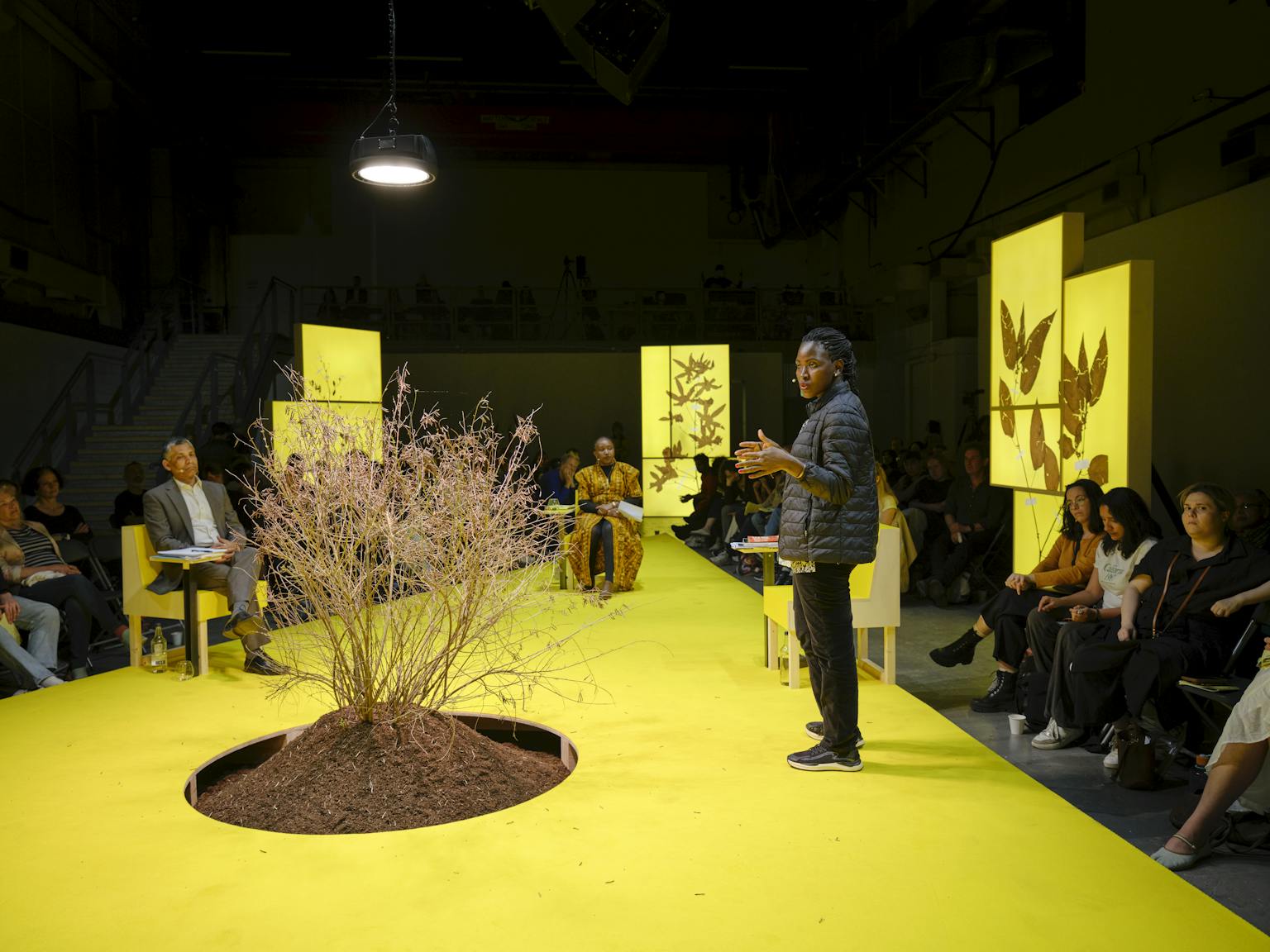 The Court for Intergenerational Climate Crimes (CICC), established by lawyer, scholar, and activist Radha D’Souza and artist–researcher Jonas Staal, is a project that ‘stages public hearings in immersive installations functioning as a court, to prosecute intergenerational [i.e., past, present, and future] climate crimes committed by states and corporations acting together’.16 It does this through the form of a ‘more-than-human tribunal’ that includes the representation of extinct species and non-human agents such as plants, alongside judges and a public jury, composed of the audience, that is tasked with passing a verdict based on the Intergenerational Climate Crimes Act, the legal foundation of the work, which assembles and supplements progressive elements of legal and political thought such as the rights of nature, interdependency, the rights of future generations, transformative justice, and so on.17