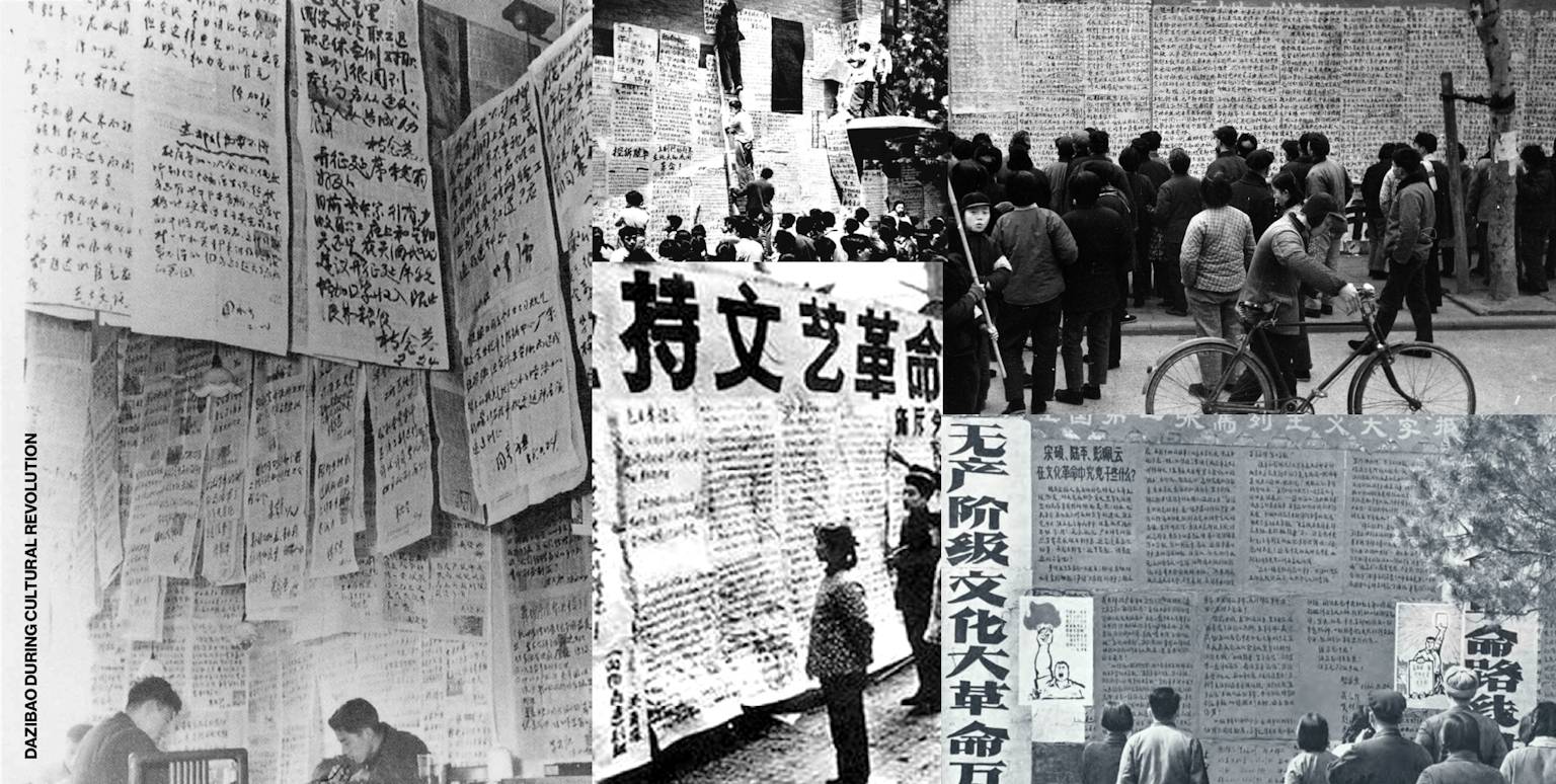 The wall of text has appeared across epochs: from Roman Acta Diurna and Dharani sutra scrolls, to the European pamphlet wars of the 17th century, Egypt’s 2013-14 Tamarod movement, the list is endless.2 But if we zoom in on the leftist meme, there’s one fascinatingly close parallel: the ‘dazibao’. Dazibao literally translates to ‘big character poster’. They were handwritten wall posters plastered in public spaces before but mostly during the Chinese Cultural Revolution by Maoist students known as the Red Guards.