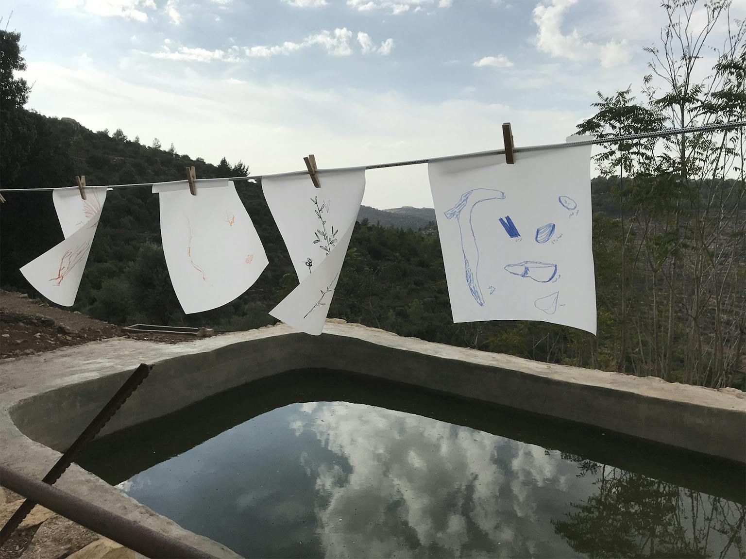 In her meanderings through a battered and fragmented landscape, Abboud realised that Palestinians are not only denied access to the land and its water spots but are also exiled from its stories. They have been uprooted from their organic relationship with the natural world that once used to be mediated through the sacred and the numinous. Abboud’s practice can be seen as an attempt at re-enchanting the landscape by reconnecting the stories that used to be woven into it. Her most recent project, Water Diviners (2020–ongoing), is a collaborative exploration of water-lore through workshops, walks, and collective writing experiments. First developed in 2020 during a residency at Sakiya Art|Science|Agriculture, this body of work was initially inspired by seven endangered natural water sources in the village of Ein Qiniya, outside of Ramallah, where Sakiya is located. Water divination offers a metaphor for a practice of countermapping that seeks to find and reconnect with water through walks, rituals, and stories, both old and new.27